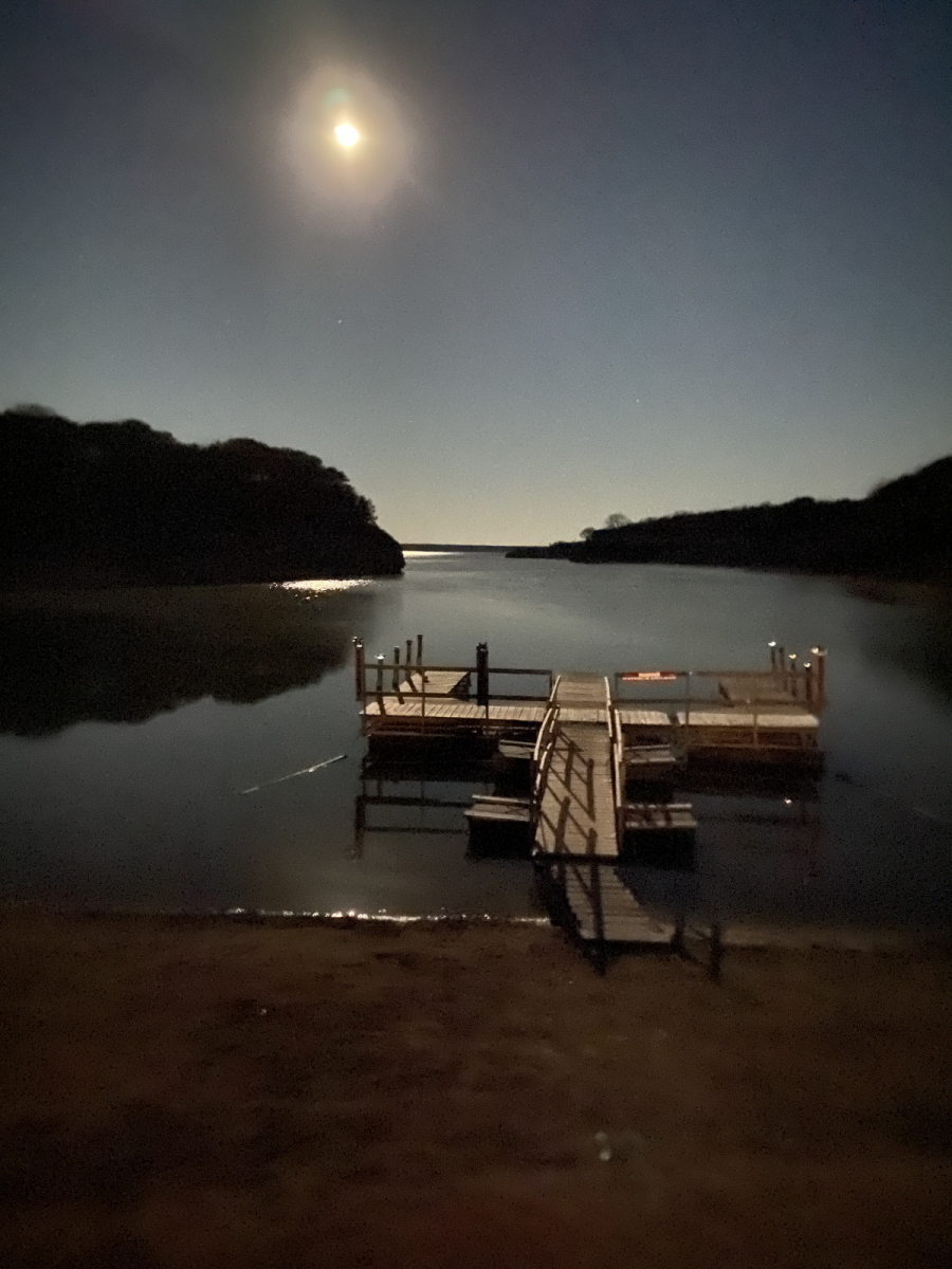 Full Moonrise at 10pm- Canyons Dock with Flat Glass Water